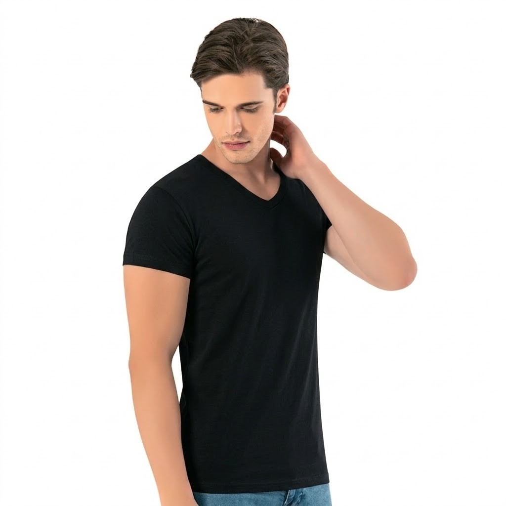 COMBED MEN'S V-NECK SHORT SLEEVE